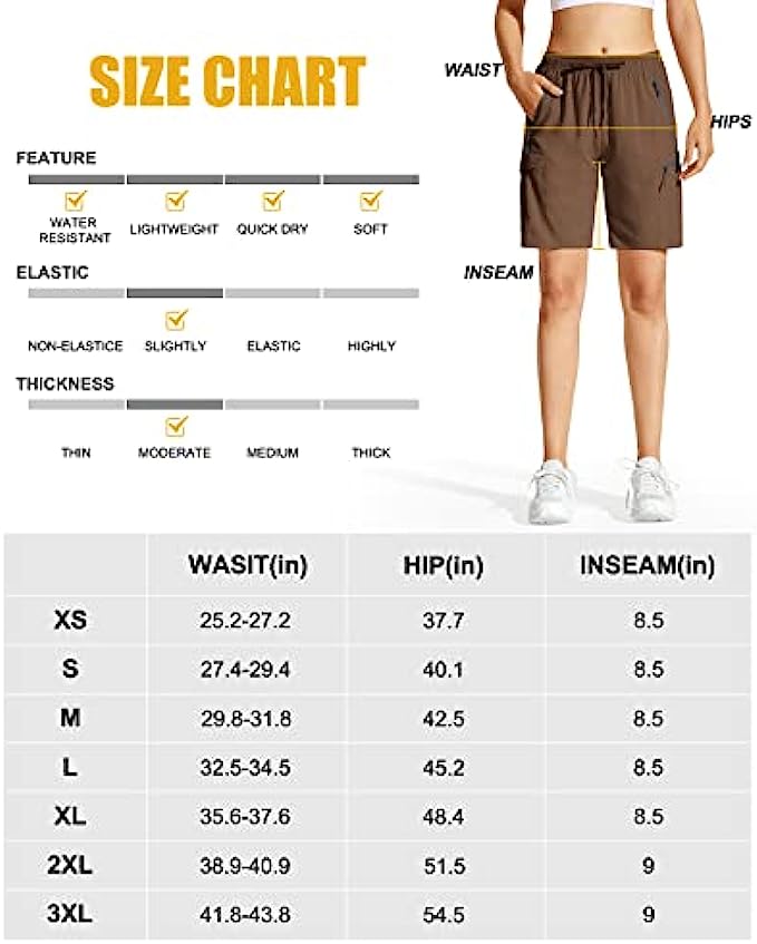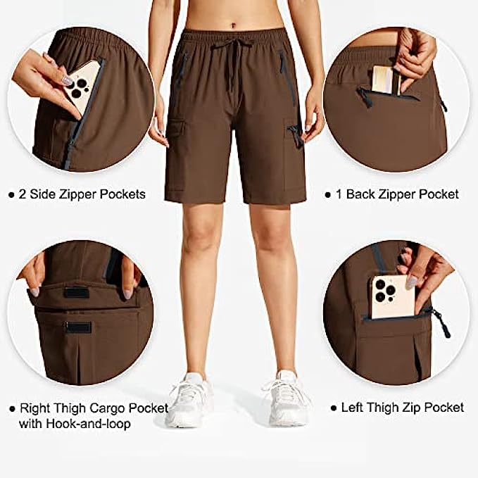 Capol Women's Hiking Cargo Shorts 8.5" Quick Dry Summer Shorts Lightweight for Golf Travel Athletic with Zipper Pockets
