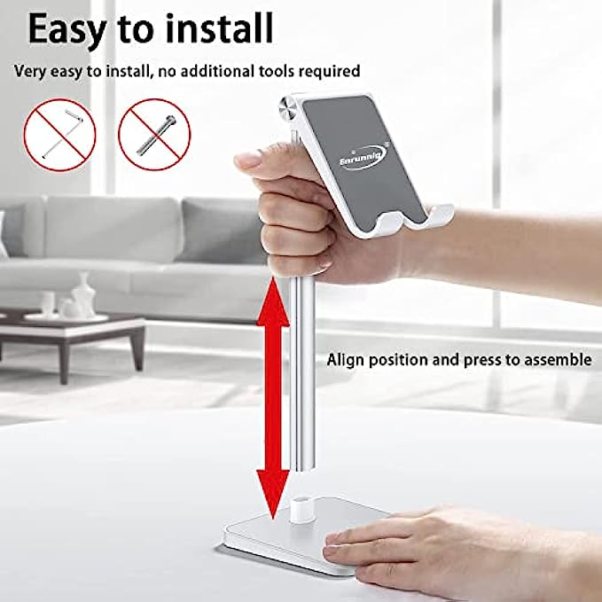 【No Screws Install】The two parts of the desktop iphone stand can be quickly assembled without tools and screws,just insert the aluminum alloy rod into the base and it can be installed successfully. The compact and lightweight design makes this phone holder easy to put in a backpack or carry around.