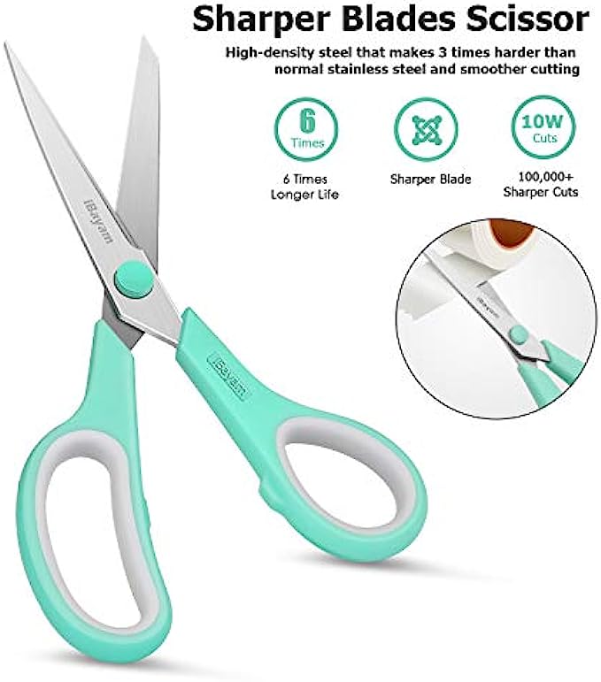 iBayam 8-Inch Soft-Grip Scissors -- 3 special scissors are suitable for most items that need to be cut. It can also be used as household scissors for cutting open frozen food bags ready for cooking. Convenient, sturdy, especially sharp scissors for general use, and very durable.