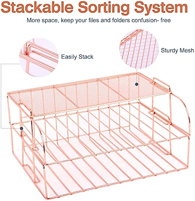 ▶Aesthetic Design- Stylish rectangle shape with linear wire design, round edging along top rim prevents scratches. Smooth metal streamlines and rounded angles design protect your desktop from scratch. Stackable capabilities increase and utilize vertically-stored space to maximize your desktop workspace.
